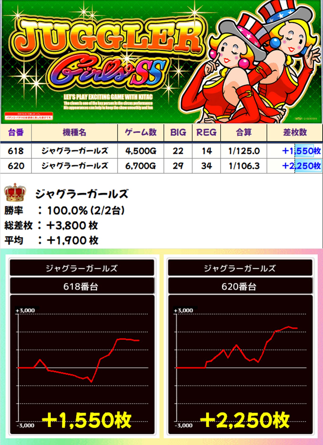 ジャグラーガールズ(2/2台) 平均+1,900枚