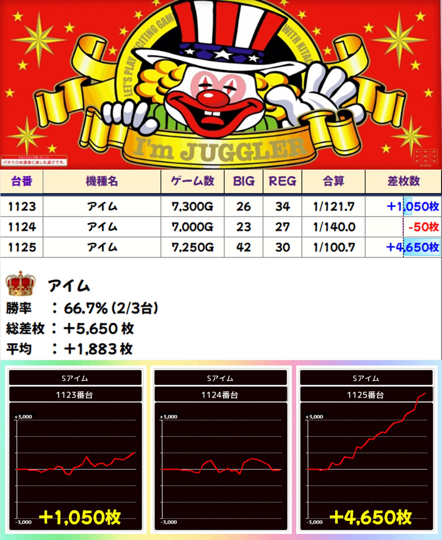 アイム(2/3台) 平均+1,883枚