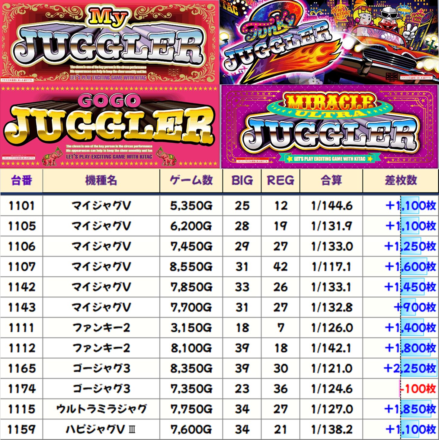 その他のジャグラーの優秀台